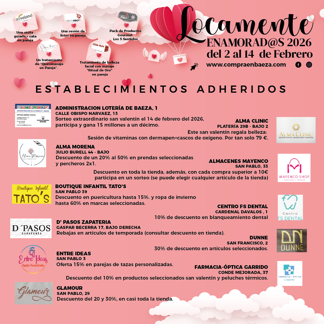 Actualmente, la plataforma CompraenBaeza.es ofrece información a la ciudadania de Baeza y a su visitante sobre los establecimientos ubicados en Baeza, sus productos o servicios, su dirección, horario, servicio a domicilio, forma de contacto o reservas y pedidos.